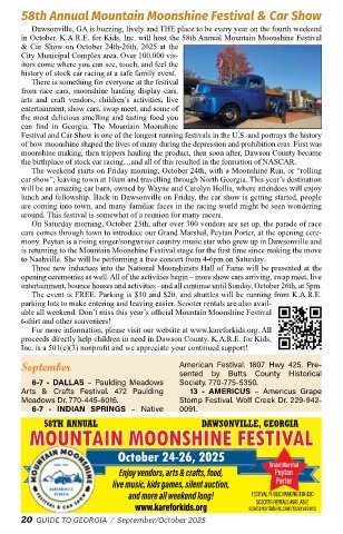 in October. K.A.R.E. for Kids, Inc. will host the 58th Annual Mountain Moonshine Festival