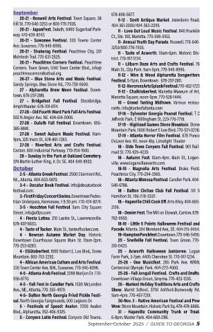 4-5 - Atlanta Arab Festival. 3288 Marijon Dr. 770- 25-26 - Fall Jonquil Festival. Crafts and Drafts.
